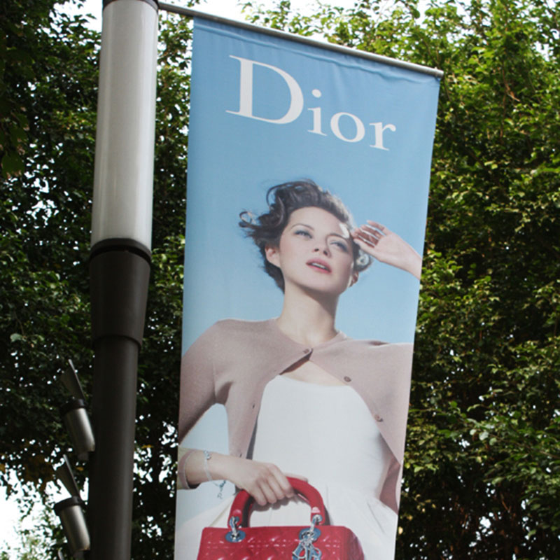 應用:馬路燈桿旗,街燈路旗,商場大廳雙面懸掛,賣場活動吊旗,商業促銷背景布,商業展會宣傳等。
