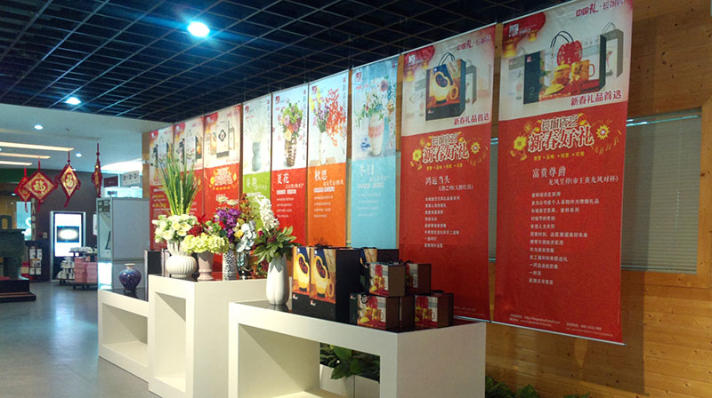 旗、刀旗、易拉寶、拉網(wǎng)展架、彩易展系統(tǒng)、快幕秀、促銷臺、L形展架、人像立牌、海報架等。