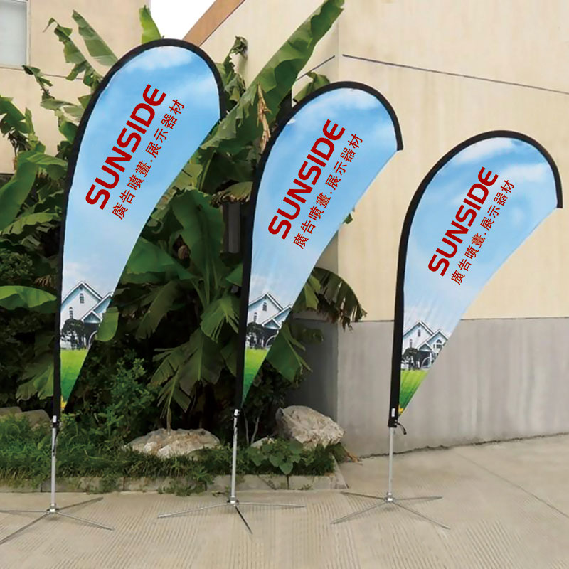 深圳生彩生產(chǎn)各種沙灘旗,刀旗,水滴旗,用于樓盤促銷,戶外廣告展示,新聞發(fā)布會(huì)造勢。