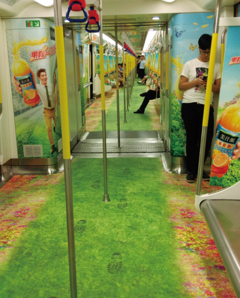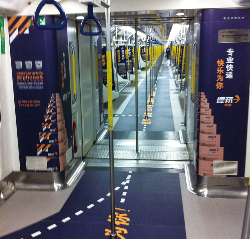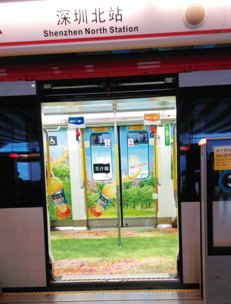 深圳生彩噴繪與深圳地鐵集團、香港雅仕維集團簽定戰(zhàn)略合作協(xié)議,生彩噴繪負責地鐵噴繪物料制作,包括車體廣告,地鐵車內(nèi)廣告,車內(nèi)地貼,座位可移貼,車門單孔透;軌道進口燈箱片,非軌道燈片,UV燈布,地鐵站站臺墻體3M導氣車貼噴繪。 地鐵噴繪物料的技術要求:貼紙海報類不干膠具備良好的可移性,燈片或燈布要符合阻燃要求,地貼防滑系數(shù)等級高,所有廣告噴繪物料環(huán)保。噴繪畫面精度要求2880Dpi。