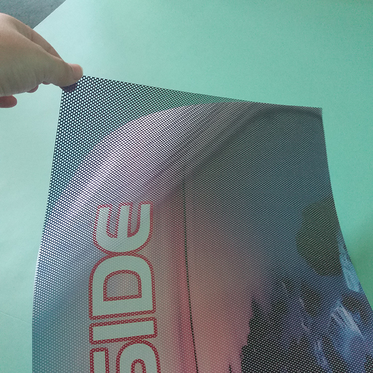 One way vision , also known as see through sticker or mesh sticker, is an efficient advertising material.